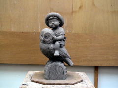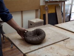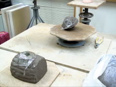| 粘土のやわらかい状態での仕事が終わり、サインを入れ作品は乾燥されます。 |