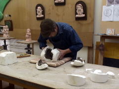 | 五個の部分が組み合わさり、全体の形が見えてきました。これからがテラコッタ制作の一番楽しいところです。型から抜き出して終わりではなく、ある意味でこれからがスタートなんです。 |