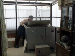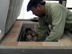 | 約800度の温度になるまで、15時間焼成されます。焼成が終わって二日後、窯の温度も下がり、いよいよ窯出しです。いつも一番緊張する瞬間です。 |