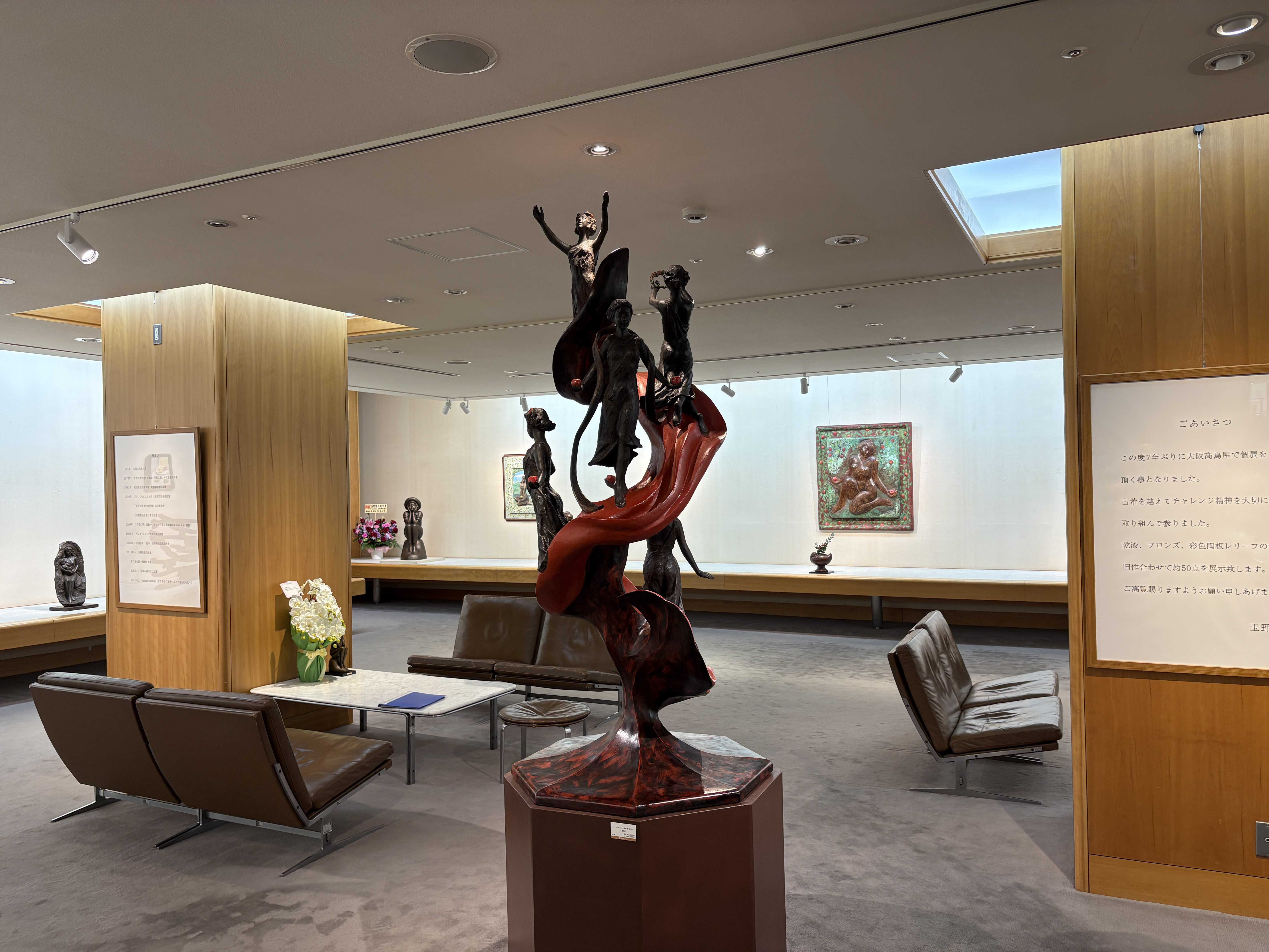 この度は7年ぶりに大阪高島屋で個展をさせて頂く事となりました。古希を超えてチャレンジ精神を大切に制作に取り組んで参りました。 今回は初めての試みで乾漆での直付け手法で大きな作品に挑戦致しました。また、新しい試みでテラコッタに彩色した静物レリーフも制作致しました。会期中、多くの方々にご来場頂き心より感謝申し上げます。 |